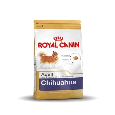 Doordat de eigenaars hun Chihuahua vaak extraatjes te eten geven, kan hij steeds veeleisender en kieskeuriger worden. Een voeding die voldoet aan de behoeftes en eisen van een volwassen Chihuahua is de gezondheidsvoeding Royal Canin Chihuahua Adult 28.